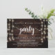 Linda festa Felizes para Sempre, Anúncio de casamento às escondidas / cartão de convite, em madeira escura rústica moderna, design de luzes de corda. Isto é perfeito para o seu casamento e festa de celebração pós-casamento. Adicione os seus detalhes em letra / caligrafia correspondente.