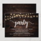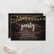 Linda festa Felizes para Sempre, Anúncio de Casamento à Fuga / cartão de convite, em design de madeira escura rústica moderna, com luzes de corda de cottage. Isto é perfeito para o seu casamento e festa de celebração pós-casamento. Adicione os seus detalhes em letra / caligrafia correspondente.