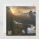 Um convite para festas de Natal artístico moderno, com uma coroa de neve e ornamentos. O verso mostra uma pintura de uma paisagem de montanha no pôr do sol. Você também pode excluí-la se preferir uma foto personalizada ou uma cor simples. Um modelo de código QR é adicionado para sua conveniência. Este convite é bonito para uma festa privada e para eventos corporativos.