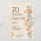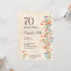 70 Floral de Aniversário Flagrante Flores Selvagens de 70 Anos Convite de festas. Celebre um marco especial com este elegante convite de 70, projetado para uma mulher maravilhosa. Apresentando um "70" ousado no topo e um delicado design floral em tons de aquarela, este convite combina lindamente sofisticação e charme. Perfeito por reunir os entes queridos para honrar uma ocasião verdadeiramente memorável. Adicione todos os detalhes do evento para criar uma manutenção exclusiva e na moda. Aproveite!