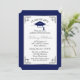 Anúncio de graduação e convite de festas elegante azul real e prateado na faculdade ou boné de formatura universitário, que é subestimado com um filtro de aparência antiga aplicado. Simplesmente personalize com seus detalhes de celebração. Design por Holiday Hearts Design (direitos reservados).