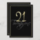 Convite de festas de Prata Formal Preto e aniversário de 21 anos Dourado. Estes convites formais, de na moda, têm o número "21" na manchete de ouro cintilante e a palavra "21" sobreposta na escrita de prata cursiva, ambos em um fundo preto inteligente com uma elegante borda de gradiente de ouro. Selecione "personalizar" para começar a personalizar seus convites de vinte e um anos. Adicione o seu próprio texto de convite de aniversário e mude as suas cores na parte de trás do cartão utilizando os prompts de menu fáceis de utilizar do Zazzle até que o seu convite pareça exatamente como pretende no ecrã. Escolha entre uma seleção de excelentes de papéis e adicione bordas redondas ou escolha um tamanho ou forma diferente de convite conforme desejar. Se precisar de ajuda para personalizar os seus convites, por favor, não hesite em contactar-me através da minha loja e terei todo o prazer em ajudá-lo. Note que todos os designs Zazzle são impressos em formato plano e que o ouro, prata e brilho são efeitos digitais impressos.