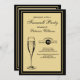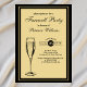 Elegância eterno para as celebrações de despedida Este convite de festas de despedida exude elegância formal com seu fundo negro e centro de ouro, oferecendo um apelo clássico para qualquer evento. A saborosa mistura de scripts e fontes serif complementa a simplicidade geral, enquanto um gráfico de vidro de champanhe adiciona um toque de celebração. A parte de trás do cartão espelha esse estilo refinado, apresentando dois copos de champanhe tostando para novos começos. Ideal para festas corporativas ou familiares, este convite é facilmente personalizável para o seu evento especial.