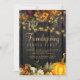 Bordaduras de flores de outono e abóbora em laranja enferrujado e burgundy escuro com cordas de luzes cintilantes douradas sobre um fundo de madeira de celeiro marrom escuro criando um convite charmoso para jantar de Ação de Graças friendsgiving com uma tipografia dourada de letra manuscrita trendy. +++++++++ Fácil de personalizar com seus detalhes! Adequado para encontros tradicionais rústicos | country | fazenda | ao ar livre no quintal com familiares e amigos.