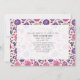 Padrão floral roxo na frente e verso. Convite genérico de festa para qualquer ocasião, incluindo aniversário, casamento, formatura, profissional, corporativo, aniversário de casamento, negócios, inauguração, chá de bebê, despedida de solteira, casa nova, festa de inauguração, jantar, etc.
