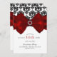 Convite Festa Glam Sweet 16 com Laço Vermelho Damasco Pret