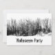 Convite do Festa de Halloween, com um design de tipografia assustador e uma imagem de floresta assombrada a preto e branco. Com texto preto e branco, você pode adicionar suas próprias informações. Um tema gótico assustador para planejar sua próxima fantasia ou celebração do Dia das Bruxas.