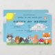 Convite de aniversário colorido e fofo com muitos animais da floresta, sol e nuvens para o deleite do seu pequeno.