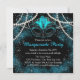 pérolas, miçangas, máscara de penas e mascarada azul-lacrimogêneo elegantes, prata e azul-lacrimogêneo. Você pode personalizar facilmente este belo convite de festas azul-alto para o seu evento simplesmente adicionando seus detalhes no estilo de fonte e na redação de sua escolha. Você pode escolher a cor de fundo de sua escolha.