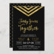 Convite moderno de aniversário de 40 anos de casamento apresentando um elegante chevron geométrico e as palavras "Quarenta Anos Juntos" em dourado falso sobre um fundo preto. O cartão inclui um verso com padrão correspondente. Confira outros itens correspondentes aqui http://www.zazzle.com/collections/modern_faux_gold_chevron_celebration_collection-119531050277382712?rf=238364477188679314