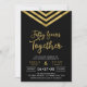 Convite moderno de aniversário de 50 anos de casamento com um elegante chevron geométrico e as palavras "Cinquenta Anos Juntos" em dourado falso sobre um fundo preto. O cartão inclui um verso com padrão correspondente. Confira outros itens correspondentes aqui http://www.zazzle.com/collections/modern_faux_gold_chevron_celebration_collection-119531050277382712?rf=238364477188679314