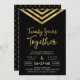 Convite moderno de aniversário de 20 anos de casamento com um elegante chevron geométrico e as palavras "Vinte Anos Juntos" em dourado falso contra um fundo preto. O cartão inclui um verso com padrão correspondente. Confira os itens correspondentes aqui http://www.zazzle.com/collections/modern_faux_gold_chevron_celebration_collection-119531050277382712?rf=238364477188679314