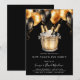 Um convite moderno de Ano Novo em aquarela, apresentando balões dourados e pretos e um balde de champanhe, em um fundo preto. Elegância moderna simples. Adequado para qualquer ano.
