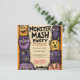 esta imagem divertida e caprichosa é um modelo de convite de festa temático de Halloween com as palavras em negrito "Festa Monstro Mash" no topo. O design é emoldurado por uma coleção de monstros adoráveis e peludos com várias expressões, renderizados em um estilo lúdico e desenhado à mão com uma paleta de cores laranja e roxo. Esta imagem é perfeita para quem deseja um design assustador, mas leve e criativo para a sua reunião de feriado.
