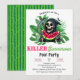 Convite de Festa de Piscina Summerween da Morte - Celebre o verão com a Morte! Este convite apresenta uma Morte engraçada com a clássica capa preta e foice comendo uma melancia contra um verde tropical exuberante. Perfeito para uma festa de Summerween assassina! Projetado para amantes do Halloween e entusiastas de filmes de terror. Com fonte vintage, grunge e desgastada, personalize este modelo de convite de festa de verão editável com os detalhes do seu evento. No verso, você encontrará um padrão de casca de melancia em verde escuro e claro. Disponível para encomenda como convites impressos ou como download digital instantâneo que você pode enviar por e-mail, mensagem de texto ou mídia social.