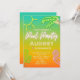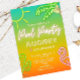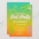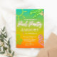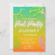 Este convite é inspirado em placas de Neon com diferentes cores tropicais usadas no fundo para dar a sensação de diversão e vibrações frescas de verão