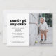 Este convite de festas primeiro aniversario divertido apresenta as palavras "festa no meu berço" em preto sobre fundo branco. Ele oferece espaço para uma foto de solteiro à direita com espaço para todos os detalhes da sua festa à esquerda. O dorso tem um padrão listrado preto e branco que coordena a cor.