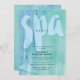 Convite de festa no spa com fundo de aquarela azul e verde perfeito para crianças e adultos.