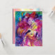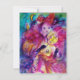 Nocturno veneziano colorido com um caráter expressivo e romântico: violinista caprichoso com fantasias cor-de-rosa brilhantes e plumadas e uma coruja engraçada sob a luz da lua, com uma linda rosa vermelha dourada no verso do cartão. Pintura em aquarela em cores vermelhas, verdes, azuis e amarelas brilhantes, faíscas douradas, inspirada em Piero (Pierrot), Comédia da Arte (Commedia dell'arte) e Carnaval de Veneza. É um belo cartão de anúncio para feriados, festas à fantasia de Mardi Gras, ocasiões especiais, festas de aniversário de crianças, festa de 16 anos, baile de máscaras de Ano Novo, Dia dos Namorados, aniversários, reuniões, praticamente qualquer evento que você deseje!