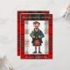 Um xadrez tradicional escocês estiloso incluindo tons vermelhos e amarelos com um homem escocês bonito vestido com seu kilt xadrez. Junte-se a nós para uma boa e antiga dança! Um convite de festa personalizado ótimo para uma festa de aniversário temática escocesa especial, recepção de casamento, celebrações da Noite de Burns, etc. Fácil de personalizar para qualquer evento com os detalhes da sua celebração.