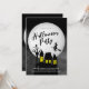Prepare-se para uma noite de diversão assustadora com este convite de festas de Halloween que inclui um design preto e branco com uma casa assombrada, bruxa voadora e tipografia ousada. Uma mistura perfeita de capricho assustador e fofo, este convite para o Dia das Bruxas do outono dá o tom para uma festa de truques ou de tratamento cheia de diversão e medo. Excelente para crianças ou adultos, é uma maneira encantadora de receber convidados para a sua celebração spooktacular! 👻 🎃 🕸️
