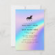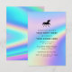 Convite de festa holográfico minimalista simples e elegante, apresentando um design limpo e elegante, lindo para casamento, chá de noiva, 1º aniversário, aniversário, festa corporativa, festa de 16 anos, despedida de solteira, chá de bebê e qualquer celebração. Unisex, colorido e atraente, mas profissional e formal. Crie seu convite holográfico único adicionando sua foto personalizada, clip-art, ícone ou qualquer imagem, ou deixe esta linda silhueta de unicórnio preto como imagem de cabeçalho.