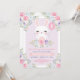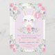 Este convite de aniversário super adorável apresenta uma ilustração fofinha de um coelho bebê segurando um balão rosa cercado por flores de primavera aquarela em rosa, roxo, azul e branco. O texto é totalmente personalizável. Para alterar o estilo da fonte, as cores ou o posicionamento do texto, basta clicar no botão "Clique para personalizar mais".