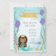 Crie um splash com este convite de Princesa Sereia. Ótimo para festas de aniversário, festas de piscina, sob o mar ou um baile de sereias. Adicione os detalhes da sua festa. Também disponível em outras cores de pele/cabelo.