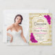Quinceanera convite de festas com sua foto. Apresenta faixas, fontes de script, rosas cor-de-rosa, tiara e confetti. Design cor-de-rosa com falso ouro brilhante. Perfeito para uma celebração elegante.