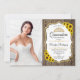 Quinceanera convite de festas com sua foto. Apresenta padrão de madeira rústico, fonte de script, girassóis, tiara e confetti. Design clássico com ouro falso brilhante. Perfeito para uma celebração elegante.