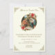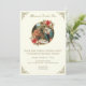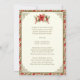 Nosso convite de aniversário de Natal para celebrar o nascimento de Jesus apresenta uma bela imagem vintage da Natividade com poinsétia vermelha acentuada com bordas douradas nos cantos. No verso estão as letras de "Anjos que ouvimos no alto". Todo o texto e fontes podem ser modificados.