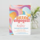 Uma agenda de fim de semana de despedida de solteira e convite descolado. Este design retrô apresenta um arco-íris abstrato ondulado pastel laranja, roxo e azul. Fácil de personalizar com os detalhes da sua festa de despedida de solteira. Um deslumbrante design 'dazed and engaged' que vai se destacar da multidão.