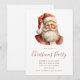 Um convite de festa de Natal com uma ilustração de estilo retrô fofo. Papai Noel com uma barba branca e farta vestindo seu terno vermelho tradicional.