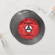 Convite para uma festa retrô com texto personalizável e cor do rótulo alterável com estrelas em fundo de disco de vinil de toca-discos. Ótimo para aniversários temáticos retrô, casamentos, DJ, festas de despedida de solteiro e várias outras ocasiões.