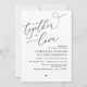 Anuncie a sua alegria para sempre em estilo com a nossa bela e romântica carta de convite à celebração de casais de chás românticos e brancos (Juntos apaixonados). Com seu design sofisticado, mas lúdico, este convite certamente define o tom de um evento inesquecível. A carta de convite apresenta um moderno design de escrita romântica minimalista, acrescentando um toque de elegância eterno à sua celebração. Projetado por TeeshaDerrick