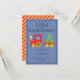 Convite de festas segundo aniversário de crianças de trem vermelho, amarelo e laranja. Personalize com o nome e a idade da criança.