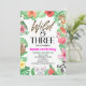 Este é um Convite de festas de aniversário de 3 anos com tema "Animais Selvagens e Três Tropicais". Garota, 3ª menina, 3ª, pombo-leopardo, preguiçosa, elefante panda, flores florais folhas verdes verde verde verde-verde-verde-rosa safari-rosa zoológico selvagem-laranja