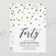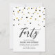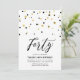 Celebre seu dia especial com este convite de festas mínimo de aniversário de 40 anos. Este design apresenta um script de na moda com letra "Quarenta" com um confete em forma de hexágono com uma combinação de cores preto e dourado. Mais designs disponíveis no meu compro BaraBomDesign.