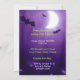 O convite para a festa do Dia das Bruxas com zombie assustador e tema do morcego em roxo profundo define o humor. Convidado único para aquela festa de fantasia. Todo o texto está pronto para você personalizar.