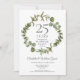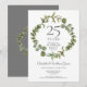 Com uma elegante grinalda de folhagem da floresta, este convite de aniversário de casamento de 25 anos de festa surpresa botânica chic pode ser personalizado com as suas informações especiais de aniversário de prata. O verso apresenta uma grinalda correspondente emoldurando as datas de aniversário em texto branco elegante em um fundo prateado. Concebido por Thisisnotme©