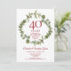Com uma elegante grinalda de verde silvestre, este convite de aniversário de 40 anos de casamento de surpresa botânica elegante pode ser personalizado com as suas informações especiais de aniversário de rubi. O verso apresenta uma grinalda correspondente emoldurando as datas de aniversário em texto branco elegante sobre um fundo vermelho rubi. Concebido por Thisisnotme©