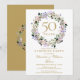 Com uma delicada guirlanda floral de lavanda em aquarela, este convite de festa surpresa de 50º aniversário de casamento pode ser personalizado com as suas informações especiais de aniversário de ouro. O verso apresenta uma guirlanda floral correspondente emoldurando as datas do aniversário em texto branco elegante em fundo dourado. Desenhado por Thisisnotme©