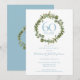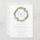 Este convite de festa surpresa de 60 anos de aniversário de casamento pode ser personalizado com as suas informações especiais de aniversário de diamante. O verso apresenta uma grinalda de verdura combinando com o enquadramento das datas do aniversário em texto branco elegante sobre um fundo azul diamante. Criado por Thisisnotme©