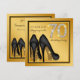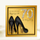 Convite de festa surpresa de 70 anos em sapato preto e dourado elegante. Este convite de festa surpresa de 70 anos preto e dourado é facilmente personalizado para o seu evento.