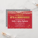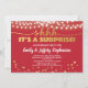 Convite de festa surpresa elegante com luzinhas sobre fundo vermelho. Design sofisticado.