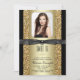 Convite de festa sweet 16 preto e dourado com brilho, com fundo brilhante preto e dourado e moldura de foto dourada elegante. Este convite de aniversário de 16 anos preto e dourado é facilmente personalizado com sua foto e detalhes do evento no estilo de fonte e cor, e texto de sua escolha. Você também pode alterar a cor do fundo neste convite de festa de aniversário de dezesseis anos preto e dourado elegante. Este é um design impresso sem fitas, laços, brilho, etc. reais.