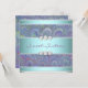 Convite de festa de aniversário de dezesseis anos com tema pavão em paisley roxo e azul turquesa.