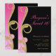 Convite Festa Sweet 16 Rodopio Moderno Rosa Preto e Dourad