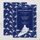 Essos convites de festa são perfeitos para dar uma festa de aniversário temática de caiaque ou outro evento especial em homenagem aos caiaqueiros. Eles apresentam ilustrações de caiaqueiros em caiaques em branco com peixes azul claro contra um fundo azul-marinho. Letras brancas em negrito são fáceis de personalizar com todos os detalhes da sua festa.