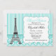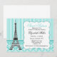 Convite tema Torre Eiffel de Paris em azul turquesa para usar em festas de dezesseis anos ou qualquer ocasião.